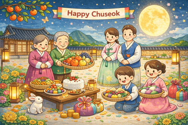 - Phong tục: Charye (cúng tổ tiên), Seongmyo (viếng mộ), múa vòng tròn Ganggangsullae
